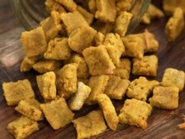 Made with either organic shredded chicken or tuna, peas, cheddar cheese, oat flour and eggs