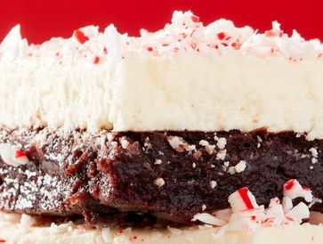Homemade chocolate brownies topper with peppermint frosting and candy canes. Who can't resist this combo?